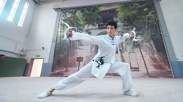 2003年,14岁的陈虎进入平凉市崆峒文武学校,正式开启习武之路。尽管条件简陋,他仍坚持在租用的瓦房中与师兄弟刻苦训练。后拜入甘肃省非物质文化遗产崆峒派武术代表性传承人王镖门下,成为入门弟子之一。那一刻,他仿佛走入武侠世界,全心钻研崆峒武术,将汗水浸渍的日子,淬炼成生命中闪亮的勋章。